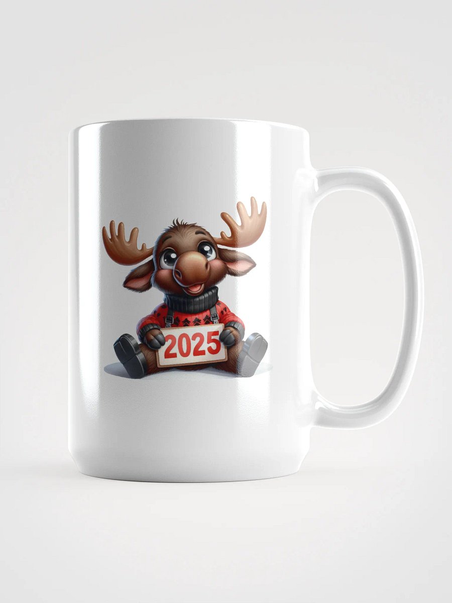 This charming illustration features a playful moose wearing a cozy, festive sweater, sitting happily while holding a sign that reads "2025." With its big, expressive eyes and friendly smile, the moose exudes a sense of warmth and cheer. The detailed sweater adds a touch of holiday spirit, making this artwork perfect for New Year celebrations. Its vibrant colors and endearing character create a delightful atmosphere, ideal for decorations, greeting cards, or festive prints, inviting everyone to celebrate the upcoming year with joy